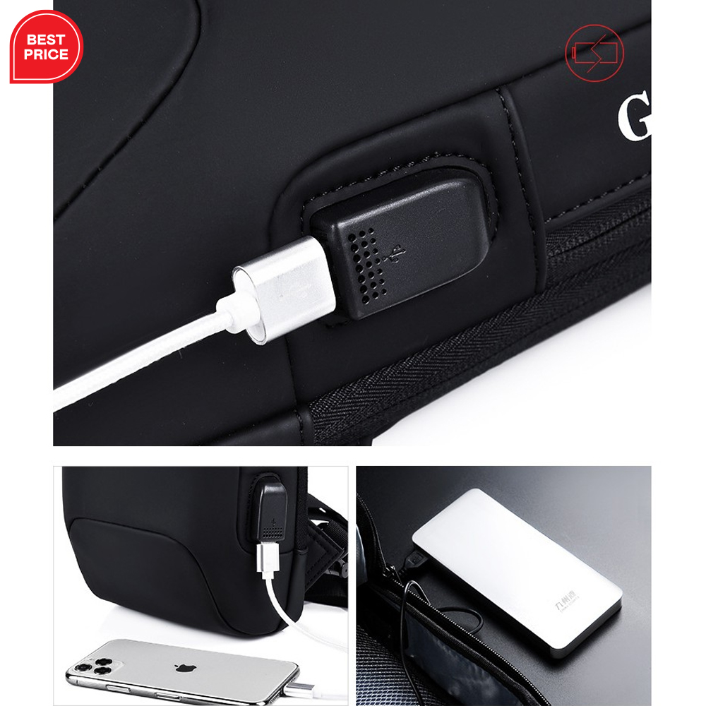 “Versatile Waterproof Men’s Crossbody Bag with USB Cable Function