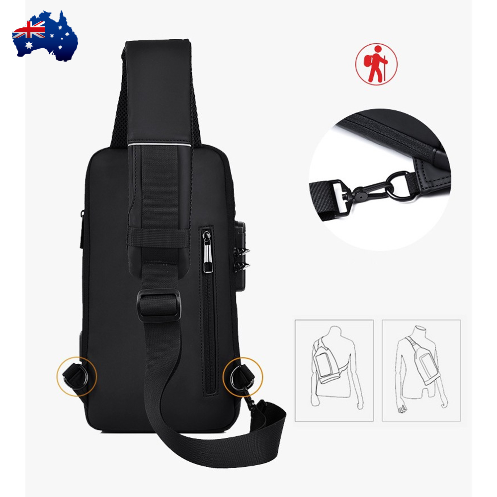 Enhance your style and convenience with this versatile chest bag that seamlessly transitions between a chest bag, crossbody bag, and messenger bag. Crafted from waterproof Nylon Polyester, this bag offers both fashion and functionality. The USB cable function adds modern utility to your daily life.